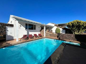 Mit Blick auf den Atlantik beeindruckt das Ferienhaus Casita Canaria in Tías mit stufenlosem Zugang und herrlicher Aussicht. Die 150 m² große Unterkunft besteht aus einem Wohnzimmer, einer gut ausgestatteten Küche, 2 Schlafzimmern und 1 Badezimmer und bietet Platz für bis zu 4 Personen. Zu den weiteren Annehmlichkeiten zählen Highspeed-WLAN (auch für Videokonferenzen geeignet), ein Fernseher, eine Waschmaschine, ein Trockner sowie Strand- oder Poolhandtücher. Für Ihr Wohlbefinden steht Ihnen auch Fitness-Equipment zur Verfügung. Ein Babybett und ein Hochstuhl sind auf Anfrage erhältlich. Die Klimaanlage befindet sich ausschließlich im Wohnzimmer. Im Außenbereich erwarten Sie ein privater, beheizter Pool, zwei Terrassen, ein Balkon und eine Außendusche – ideal zum Entspannen und Genießen der frischen Luft. Das Haus liegt strandnah, öffentliche Verkehrsmittel sind fußläufig erreichbar und ein Tennisplatz ist in 15 Minuten mit dem Auto erreichbar. Ein großer Supermarkt in Macher sowie der Yachthafen von Puerto Calero mit ausgezeichneten Restaurants sind nur 10 Autominuten entfernt. Ein Parkplatz steht Ihnen auf dem Grundstück zur Verfügung, zudem gibt es kostenlose Parkmöglichkeiten an der Straße. Ein Haustier ist erlaubt. Partys sind nicht gestattet. In dieser Unterkunft ist das Rauchen verboten. Ein Teil des Stroms wird durch Photovoltaikanlagen erzeugt....